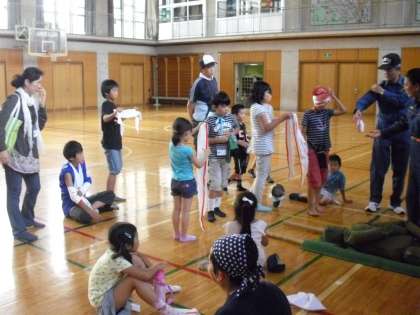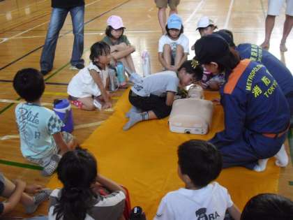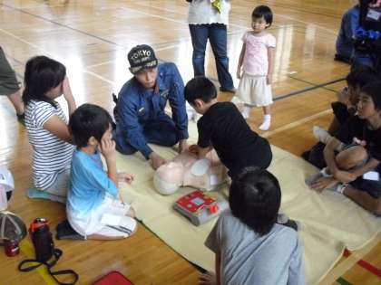 三角布で止血の方法も知りました。AEDを使いました。人工呼吸もやってみました。