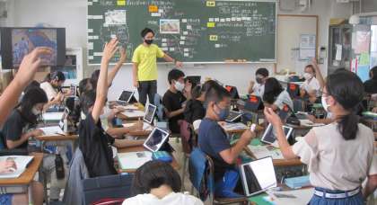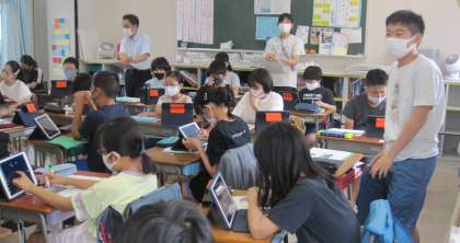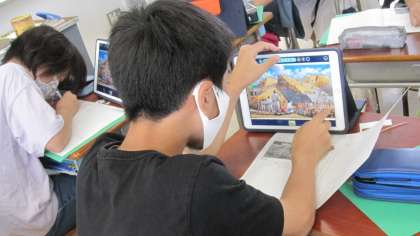 ロイロノートで配布された古墳時代の一枚の写真資料から、事実と推測したことを書いていきました。子どもたちは写真の気になった部分を拡大して、じっくり見ていました。縄文時代と比較して考え、「縄文時代から古墳時代にかけてどのようなことがあって、時代が変わっていったのだろう」という学習問題を立てることができました。