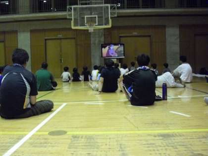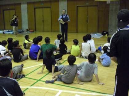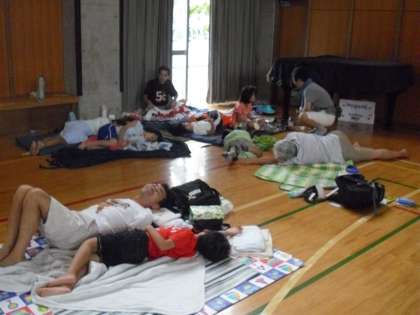 等々力駐在の方に防犯のお話をいただき、その後、地震に関するビデオを観て、おやつをいただき体育館で寝ました。朝6時に起きましたが、中には寝ないで過ごした子どももいたようです。1日だけですから、そんな生活もできたのでしょう。いい体験になりました。