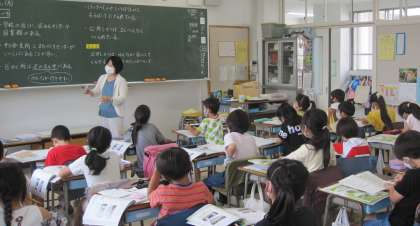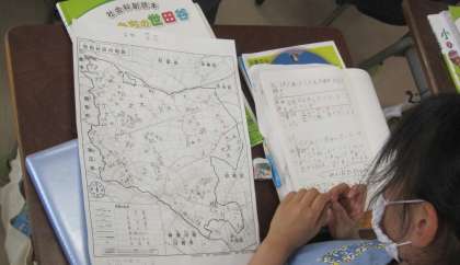 公共施設が世田谷区のどこにあるのか、白地図に書き込み、気が付いたことを発表しました。「区役所はみんなが行きやすいように、区の真ん中にある。」「学校の近くに、区民センターや図書館がある。」など意欲的に発言していました。
