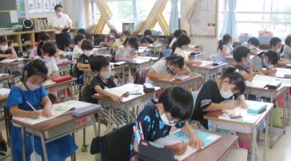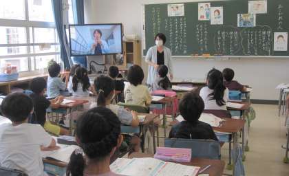 教科書「あこがれの人」を読み、『どのような考えから友の誘いを断ったのか』について考えました。友達との意見交換でさらに考えを深めることができました。授業最後の説話の場面では、担任のリコーダー演奏をVTRでみました。子どもたちは大喜びで、温かい拍手を送っていました。
