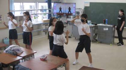 VTRの動きを参考にしながら、チームのメンバーと協力して楽しそうに練習しています。メリハリのある動きが印象的でした。