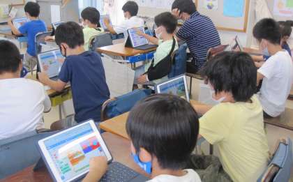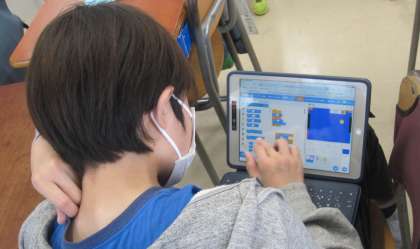 Scratchでシューティングゲームやアクションゲームを作って楽しんでいました。計算で動かすプログラムを作っている子もいました。
