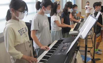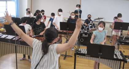 『銀河鉄道999』 打楽器、鍵盤楽器での演奏に取り組んでいます。パートごとの練習後に全体で合わせてみました。