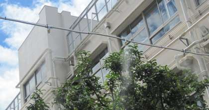 ミストシャワー設置工事が完了しました。暑い日の休み時間や体育の授業が終わったときなどに少し涼しい気分が味わえるかもしれません。