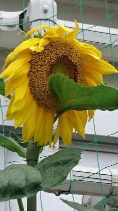 昨年、3年生が植えたヒマワリの場所に、空に向かってすくすくと大きなヒマワリが育ちました。多分、昨年の種が育ったものです。(6月30日)
