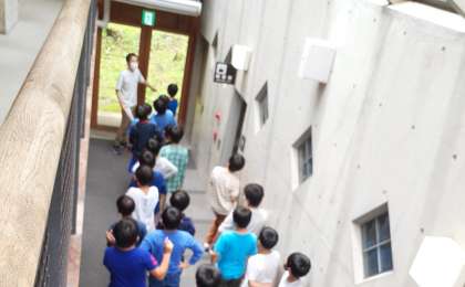 昼食を終え、避難訓練をしました。