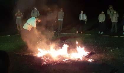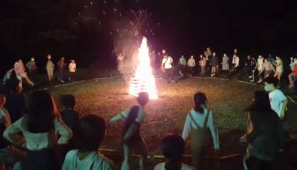 今宵は、キャンプファイヤーで盛り上がりました。ジンギスカンでは、子どもたちの笑顔120%でした。最後は、カメラマン榎本さんの演出で星形の炎を見せてもらいました。とてもきれいでした。皆さんありがとうございました。