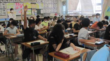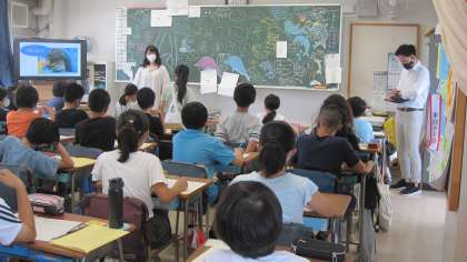 年間を通して、キャリア教育の授業を行っています。今回は、北海道の水族館にお勤めの『イルカの調教師』さんをお招きしました。小学生の頃の夢を実現させるために実践したきたことを具体的にお話いただきました。講師の先生の苗字を聞いて子どもたちは???担任の話し方にそっくりでした。