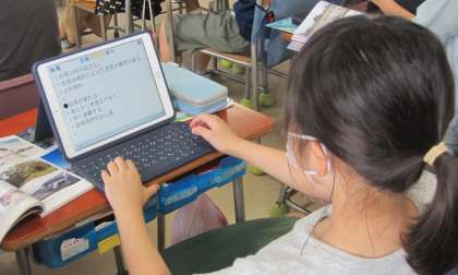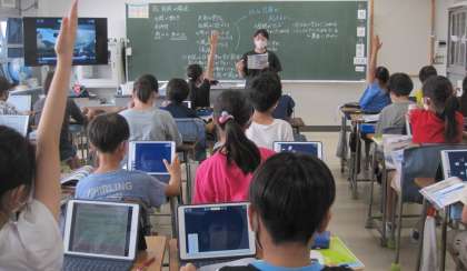 「台風による強風や大雨によってどのような災害が起こることがあるのか」映像や写真を見て考えました。担任自らが撮影した映像は、子どもたちの心に響いていました。