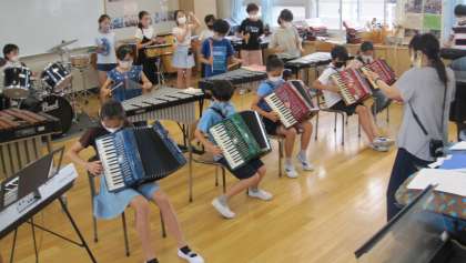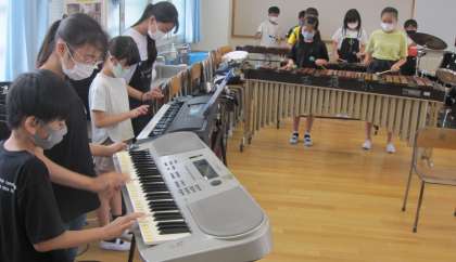 全校での音楽朝会が実施できないので、クラスごとにミニ発表会をしています。練習を積んできた「キリマンジャロ」の合奏を披露してくれました。発表会の前に、より良い合奏にするために意見を出し合い、個人練習、通し練習を経て、本番の発表会に臨みました。