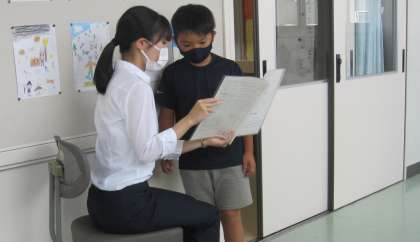 担任から児童一人一人に、その子のよさや1学期に努力したこと、力をつけたこと等について、お話しながら通知表を渡していきました。子どもたちの緊張した顔や笑顔が印象的でした。写真は2年生の様子です。