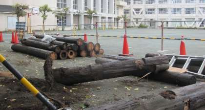 本校の遊具「アバレチック」は、平成元年3月11日に完成しました。玉堤小の子どもたちのためにと、地域の方やPTAの方が協力して作ったものです。その当時は、校舎側に設置されていました。現在ある場所は昔プールがあった場所で、現在の体育館とプールが完成した次の年の平成5年に「アバレチック」は今の場所に移設されました。老朽化で、安全面の確保が難しいため、撤去することにしました。30年以上、玉堤小の子どもたちがお世話になり、感謝したいと思います。