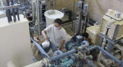 学校休業日の5日間は、循環ポンプを止めていたので、藻が合えていないか心配でしたが、プールはきれいでした。教員が協力をして、機械に珪藻土や塩素を加えたり、水質の状況を確かめたりしました。