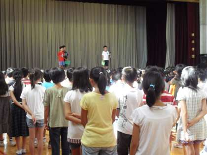 2学期が始まりました。新しい先生、新しい仲間を迎え、スタートしました。始業式で3年生の代表の児童3名が、「理科や社会を頑張ります」など自分のめあてを述べました。他の学年の児童も自分のめあてを意識しているようでした。今学期もさらに充実した学校生活となるように努め、50周年の取り組みを進めてまいります。