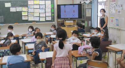 初めて、絵の具に挑戦しました。今日のめあては、「絵の具の正しい使い方を覚えよう」です。授業の終わりには、絵の具を使ってみた感想を発表し合いました。絵の具のよさをたくさん発表していました。