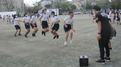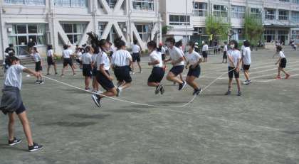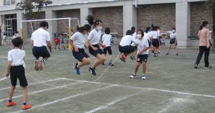 自主的に長縄パフォーマンスの練習をしています。とても楽しそうです。