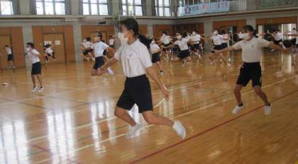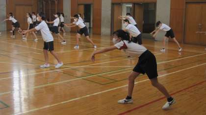 南中ソーランの練習を始めました。一つ一つの動きを覚えている段階です。
