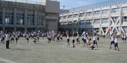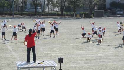 『百本桜〜祝いの舞〜』の練習が進んでいます。 隊形移動がすばやくできるようになりました。扇子の動きがそろい、とてもきれいです。