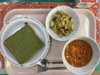 今日の給食は、豚キムチ丼、牛乳、大根と昆布のサラダ、トックスープです。
