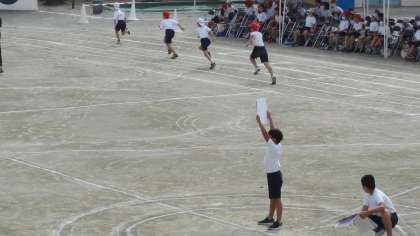 レース順をプラカードでお知らせしたり、ゴールテープを担当したりしました。その他にも受付係、児童のお世話係など、6年生全員が発表会を支える係を担当し、活躍しました。