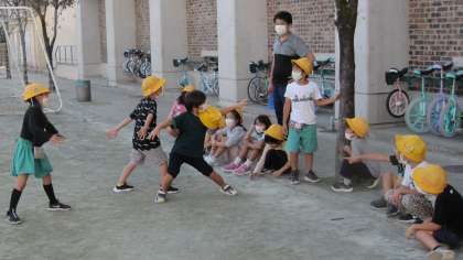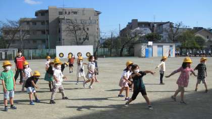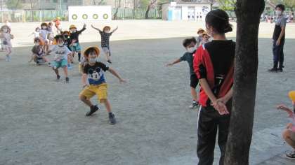 教育実習生との最後の時間は、校庭で思い切り体を動かし、楽しみました。子どもたちにとっても思い出の時間になりました。