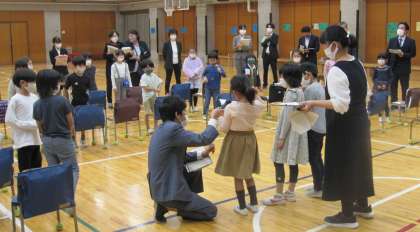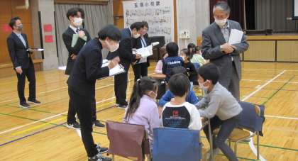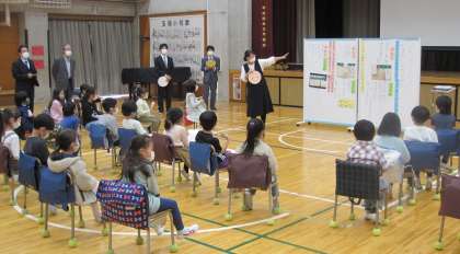 今年度3回目の校内研究会で1年生の道徳授業を行いました。導入から教材提示は、ペープサートを映像に撮り、大型スクリーンに映しました。1年生担任、専科教諭や他学年の教諭も協力して本日の授業をつくり上げていきました。グループ活動では、表情カードを活用し、登場人物の気持ちを想像して、言葉で表現しました。子どもたちはよく考え、集中して取り組んでいました。