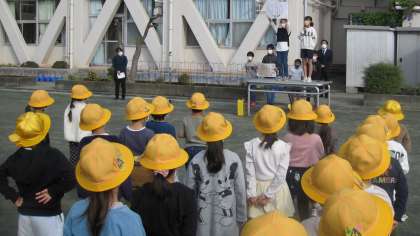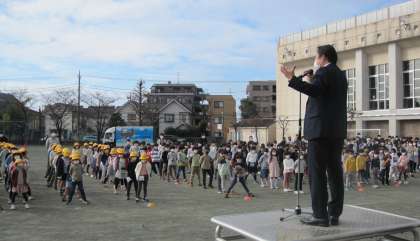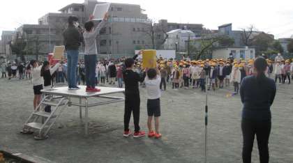 学校長より、現在建設中の「谷沢川分水路」で60周年記念行事の一環で「6年生児童が絵を描く」というお話がありました。その後で、代表委員が『ユニセフ募金』についての協力の呼びかけをしました。