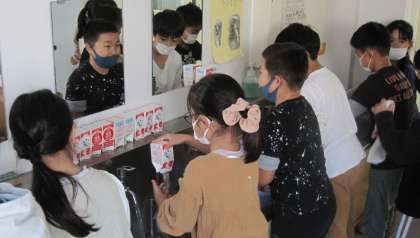 毎日、各クラスの当番が意欲的に働いています。洗って、開いて、乾かして…。