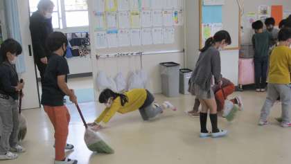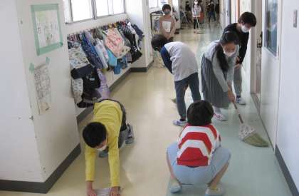 友達と協力して、校舎内をきれいにしています。クラスごとに効率的な清掃の仕方を工夫しています。