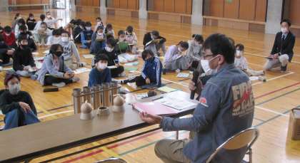 今日は花火師さんにお話していただきました。子どもたちは打ち上げ花火の歴史やしくみ、種類について学び、働く喜びや苦労などについてたくさんの質問をしていました。