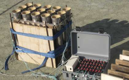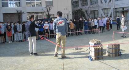 校庭に出て、本日の花火打ち上げの準備も見学しました。花火打ち上げの瞬間をイメージして、ドーンと言いながらジャンプしている子もいました。