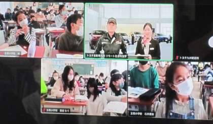 自動車工業のまとめの授業として、TOYOTA リモート社会科見学を実施しました。九州の工場で実際に働いている方から説明をしていただいたり、質問に答えていただいたりして、さらに理解を深めていました。