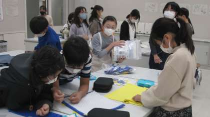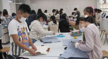 展覧会に向けて、『どうぶつたちの ウォールポケット』を制作しています。今日は、ミシン縫いの前の準備をしました。まち針でとめたり、仮縫いをしたりしました。