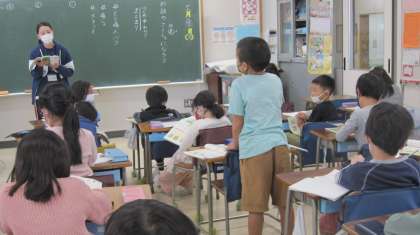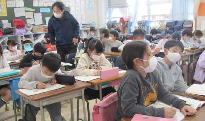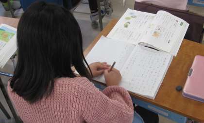 『お話の作者になろう』の学習を進めています。絵を見てお話を考えていきます。絵の2人はどんな人物か、どんなできごとが起こるのか…、想像を膨らませて考えていきます。
