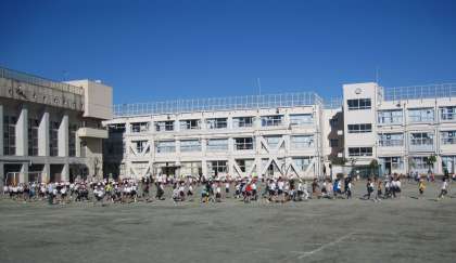 中休みの最後の6分間は、持久走に取り組みます。今日は、1年生・2年生・3年生の割り当ての時間でした。音楽がかかると全力で走り出しました。