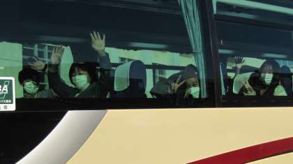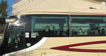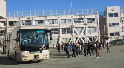 子どもたちは、バスから手を振って、出かけていきました。最高の思い出をつくってきてください。