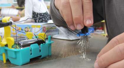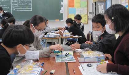 『電流のはたらき』について、学習を進めています。課題は、「電磁石の力を強くするには、どうしたらよいのだろうか」です。子どもたちの意見から、・電流を大きくする。・コイルの導線の巻き数を増やす。 2つの実験を行いました。