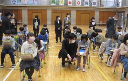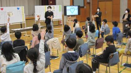 今年度4回目の校内研究研究授業を実施しました。『自然とともに生きる』をテーマに「鳥に残した柿の実」を読み、登場人物の気持ちを考えていきました。心情メーターを使って登場人物の気持ちを共感的にとらえました。子どもたちの取り組みの様子から、講師の先生からお褒めの言葉をいただきました。