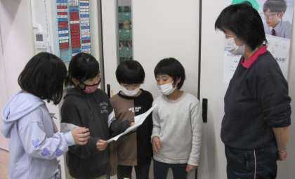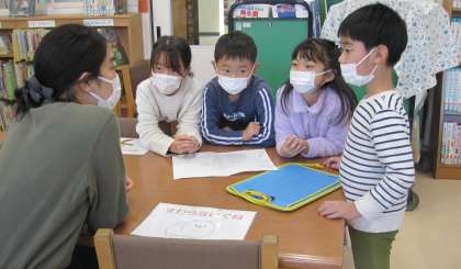 教職員に仕事の内容を中心にインタビューをしています。グループごとにあらかじめ聞きたいことをメモして、緊張しながらインタビューをしました。子どもたちにとっては、驚くことが多かったようです。