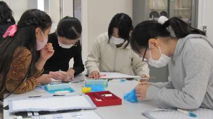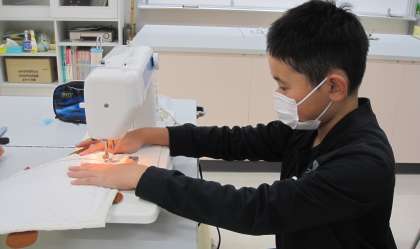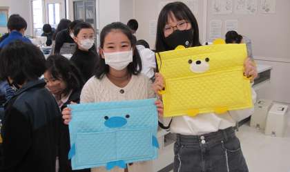 『どうぶつたちのウォールポケット』づくりに取り組んでいます。手縫い、ミシン縫いのそれぞれの特性を生かして製作し、本日完成した子もいました。