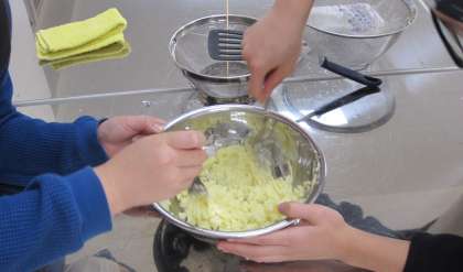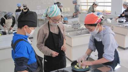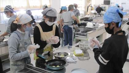 昨年度はコロナ禍で1度も調理実習を行うことができませんでした。今日は、6年生にとって初めての調理実習になります。感染症対策を十分に行い実施しました。『いももち』作りに挑戦です。