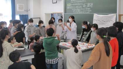 『水溶液の性質』の学習を進めています。課題は「4つの見た目の似ている水溶液にそれぞれ何がとけているかを調べるにはどんな方法があるだろ。』です。今日は、子どもたちが考えた実験方法のひとつ、「4つの水溶液を蒸発させる」実験に取り組みました。写真は、安全に留意して実験を行うために、学級全体で確認をしているところです。