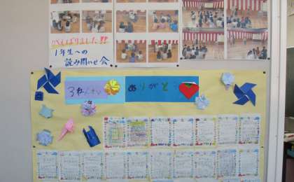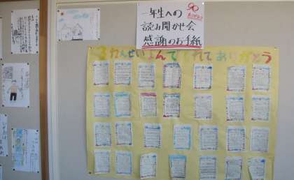 先日、3年生の子どもたちが、1年生の子どもたちに本の読み聞かせをしました。そのときのお礼のお手紙が届きました。3年生の廊下に掲示しています。