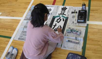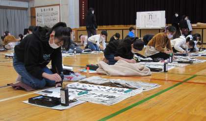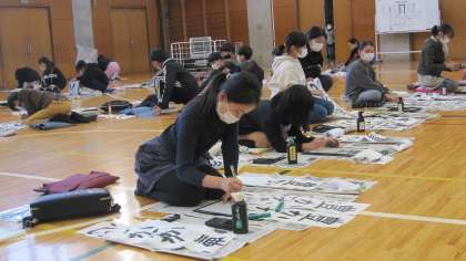 会場の体育館は、張り詰めた空気が流れていました。練習の成果を発揮し、納得できる作品を仕上げたことでしょう。子どもたちの作品は、各教室の廊下に掲示します。
