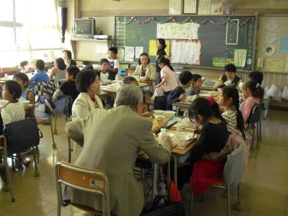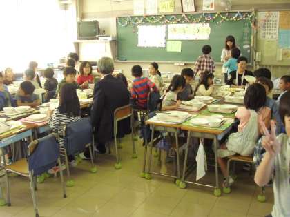 触れ合い給食で、お家の敬老の方を招待しました。17名の方にお越しいただきました。