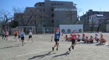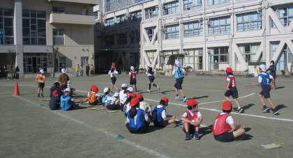 持久走記録会、トップバッターは3年1組です。保護者の皆様かたくさん駆けつけてくださったので、子どもたちは少し緊張気味です。スタートすると、今までに練習を積み重ねてきた自分のペースで、精一杯力を尽くしていました。