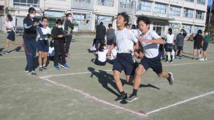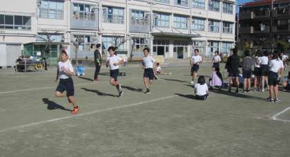 いよいよ明日が本番です。練習最後のタイムトライアル。力を出し切って走っている子、体の調子を整えながら走っている子、様々でしたが、明日は、自己最高記録が達成できるように応援しています。