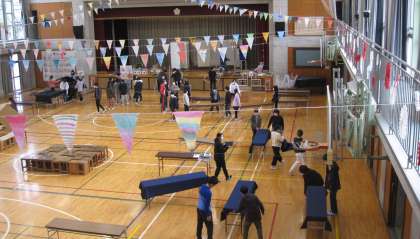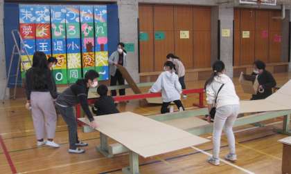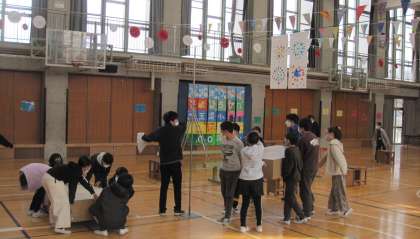 6年生の子どもたちと教職員が展覧会の準備を行いました。明日は、子どもたちの立体作品を搬入します。