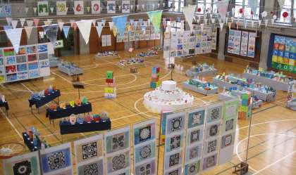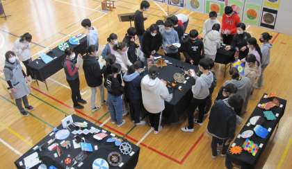 6年生は、自分たちの作品をどのように並べたら、芸術性が高まるか、試行錯誤しながら話し合って作品を配置していました。